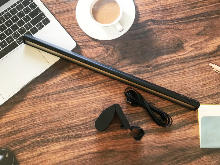颜值和质感都在线,一体成型的小圆弧流线设计,简约又高级,挂在显示器上像个精致的装饰品,瞬间提升桌面档次。黑色磨砂材质摸着手感细腻,连说明书都是黑色磨砂纸配银色字体,细节处透着精致,摆在桌上看着就舒服。用起来几乎感觉不到它的存在,光线安安静静照亮桌面,屏幕不反光,眼睛也不累,工作、娱乐都能更专注。